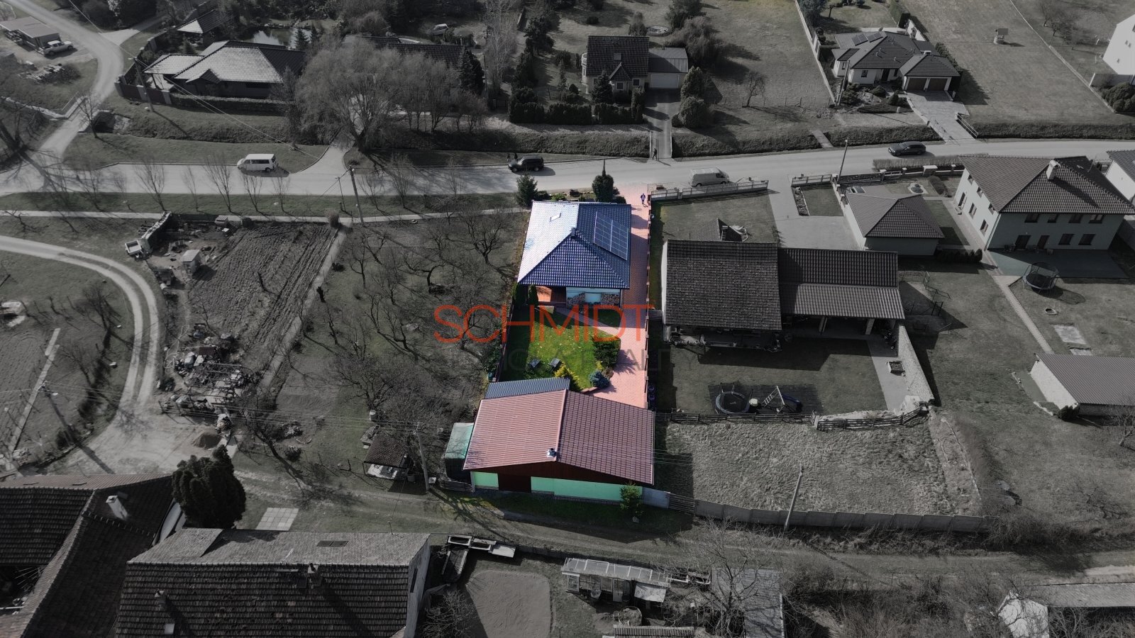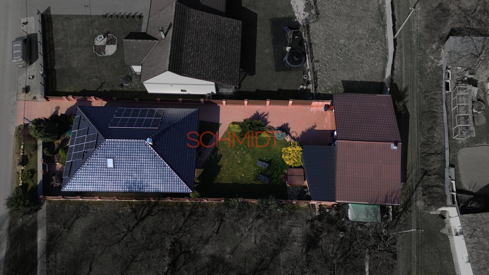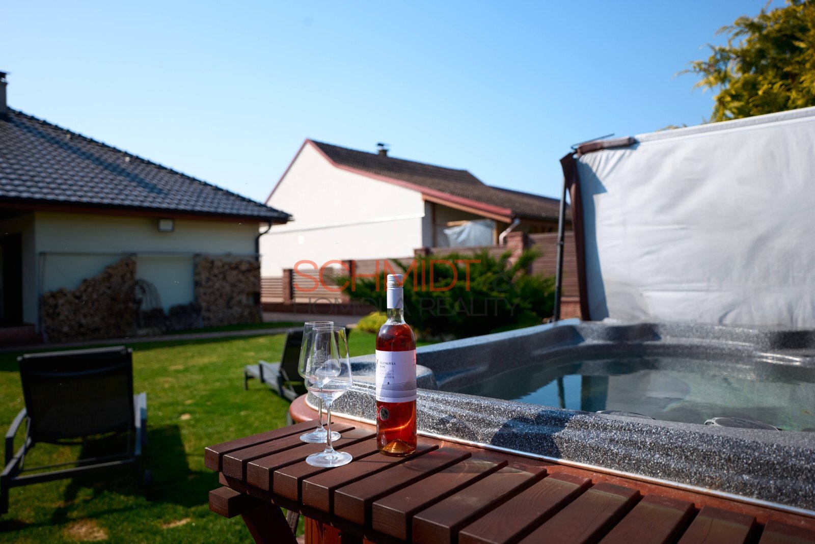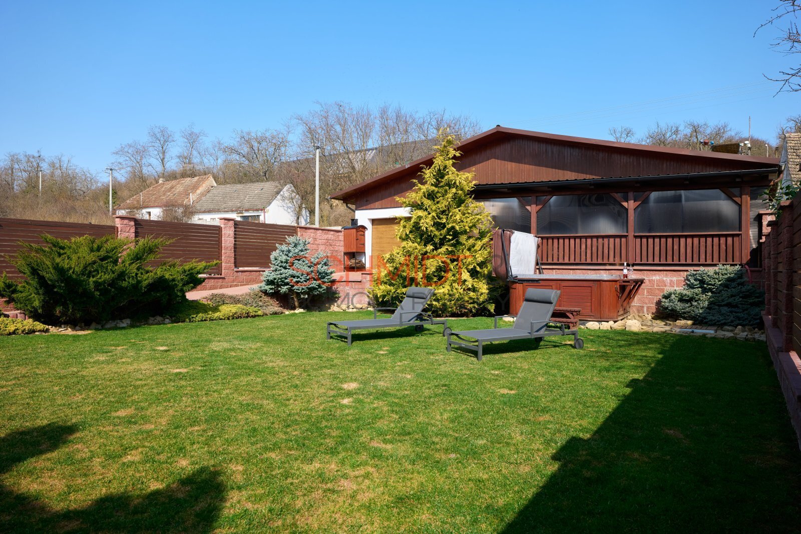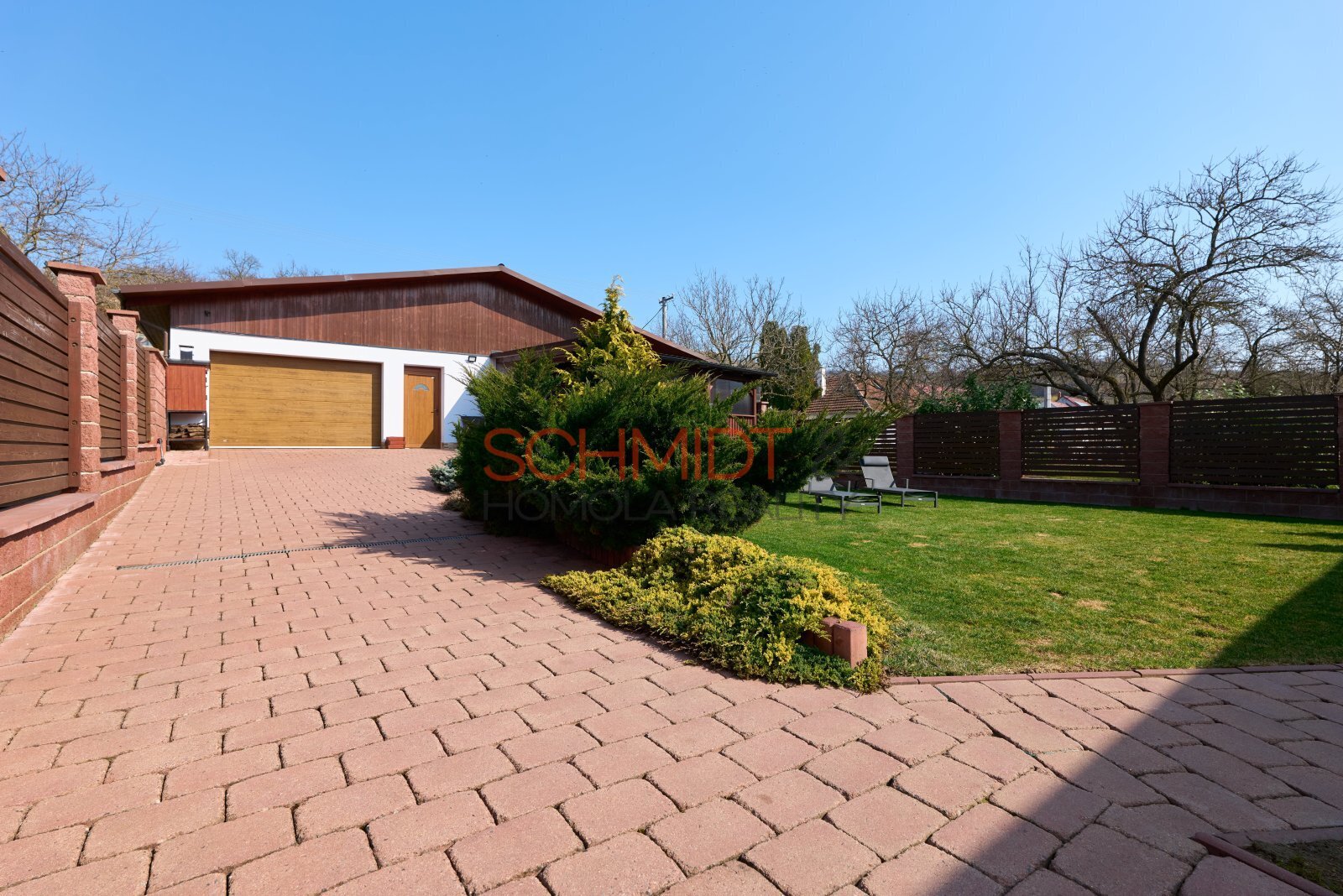 Zahrada nabízí klid a soukromí. Kromě vzrostlých okrasných keřů na ní najdeme mimo jiné vířivku pro 4 osoby (v hodnotě cca 350 tis. Kč) a v zadní části druhou zděnou stavbu- kryté parkovací stání a dvě opravdu prostorné garáže doplněné dílnou a skladovacím prostorem. Jedna je dostupná příjezdovou cestou ze zahrady, druhá z obecní cesty ze zadní strany pozemku. Budova s garážemi má zastavěnou plochu 113 m². Krbová kamna nabízejí možnost vytápění a nad celým prostorem garáží se nachází půdní prostor přístupný po schodech.