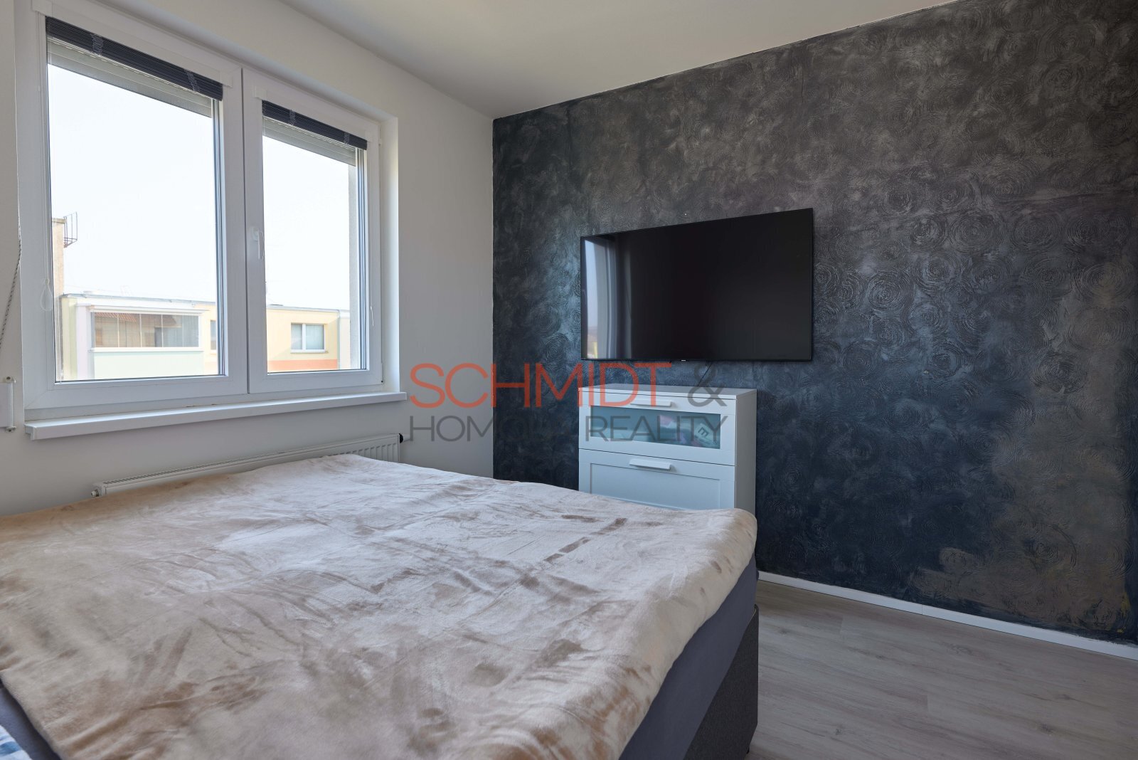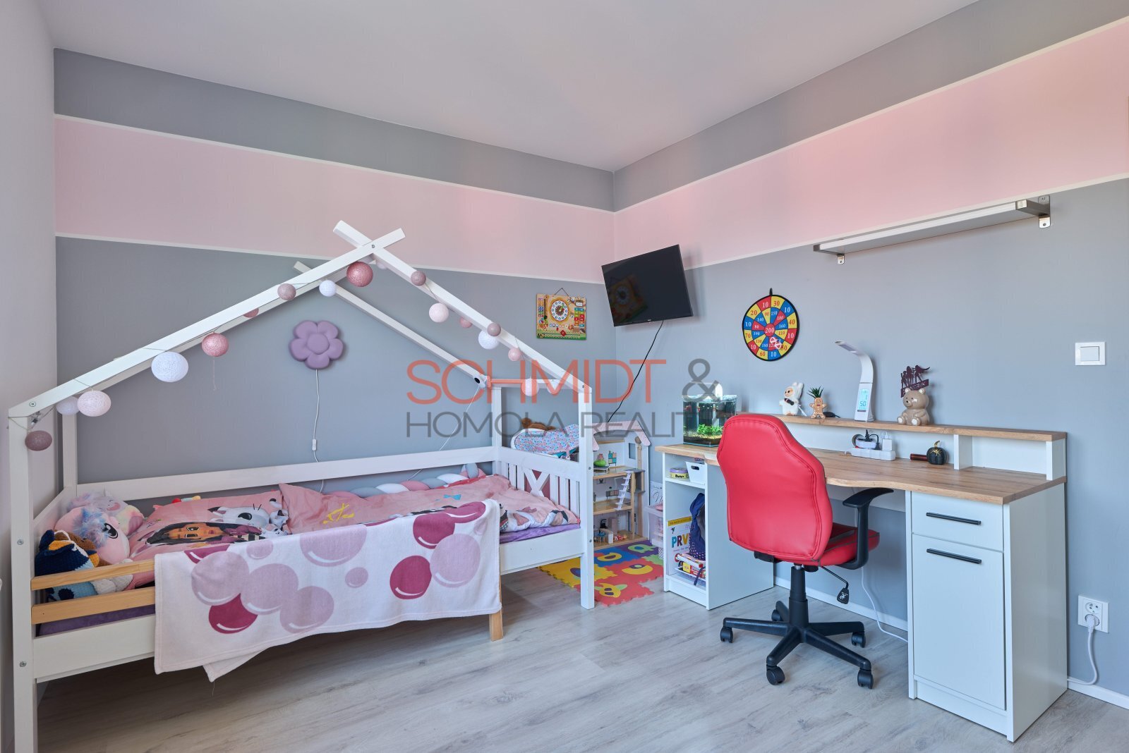 Užitná plocha bytu činí 64,21 m² + balkon 8,32 m² + sklep 2,86 m². Okna na západní stranu jsou osazeny předokenními žaluziemi, na severní a východní stranu jsou žaluzie vnitřní. V dětském pokoji a ložnice jsou na oknech také venkovní rolety. Kuchyně je vybavená vestavenými spotřebiči včetně myčky nádobí, v obývacím pokoji orientovaném na západ je klimatizace. Mezi další výhody bytu patří koupelna s vanou, oddělené wc, šatna a v neposlední řadě prostorný balkon s krásným výhledem. V ložnici i dětském pokoji je vestavená skříň. Přímo před domem se nachází zastávka školního autobusu, parkování na veřejných plochách je bezproblémové. Cena bytu je konečná, včetně provize realitní kanceláře.