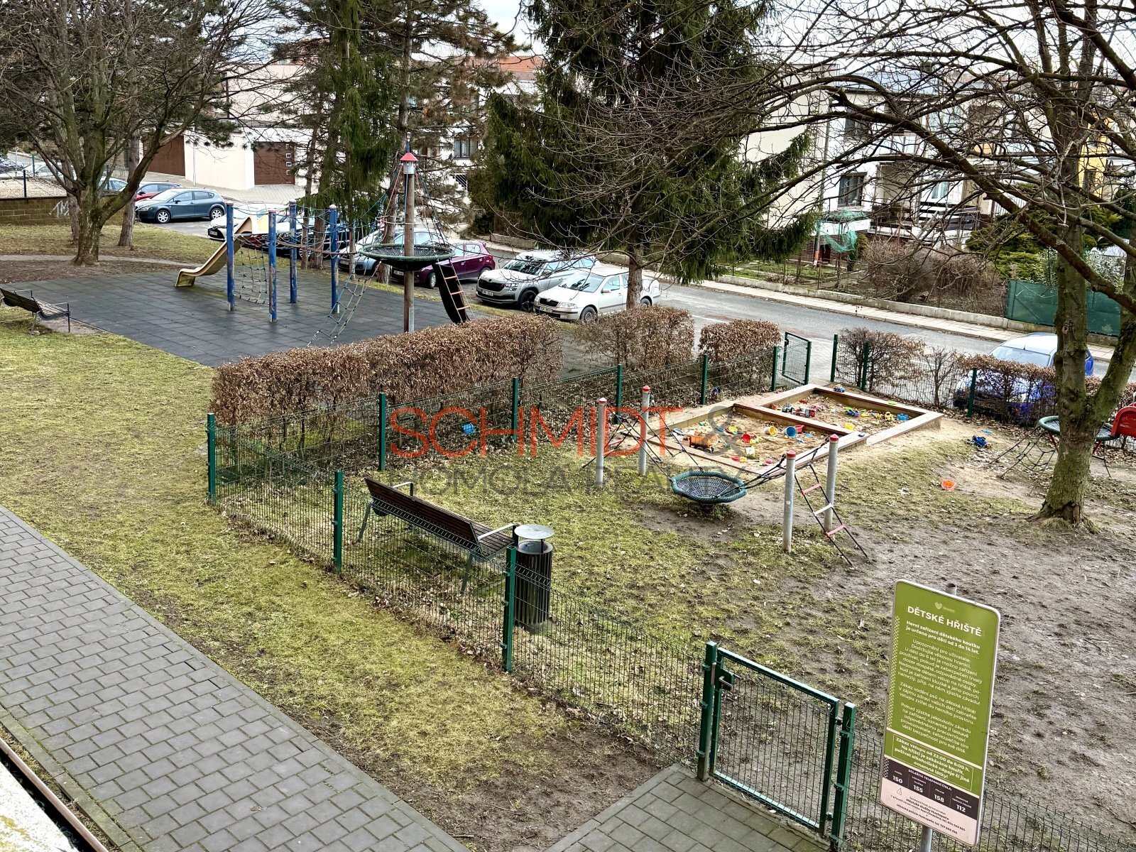 K bytu náleží balkon a sklepní kóje a příjemným bonusem je také výhled směrem na mandloňové sady. Byt je nezařízený, připravený k okamžitému nastěhování. Součástí je nová kuchyňská linka se spotřebiči: trouba, digestoř, myčka, lednice a mrazák. Dispozice nabízí dostatek prostoru pro rodinu i pro ty, kdo potřebují samostatný pokoj na práci. Parkování je možné u domu na veřejném parkovišti.