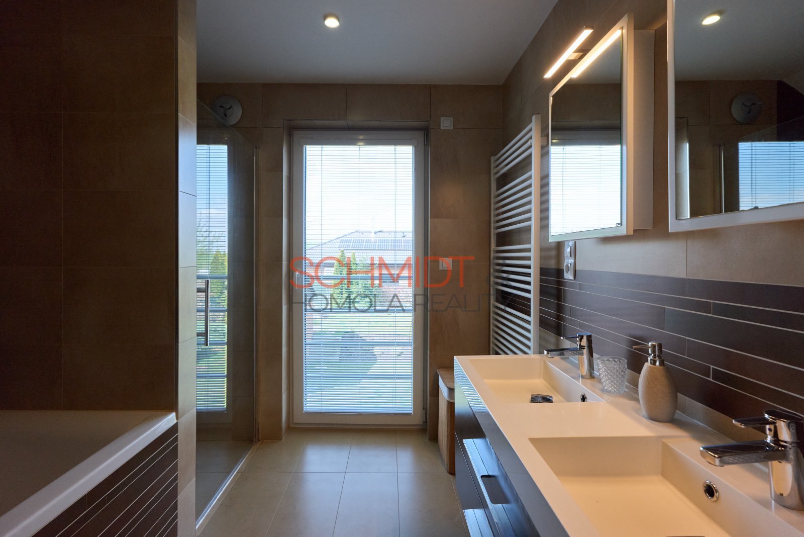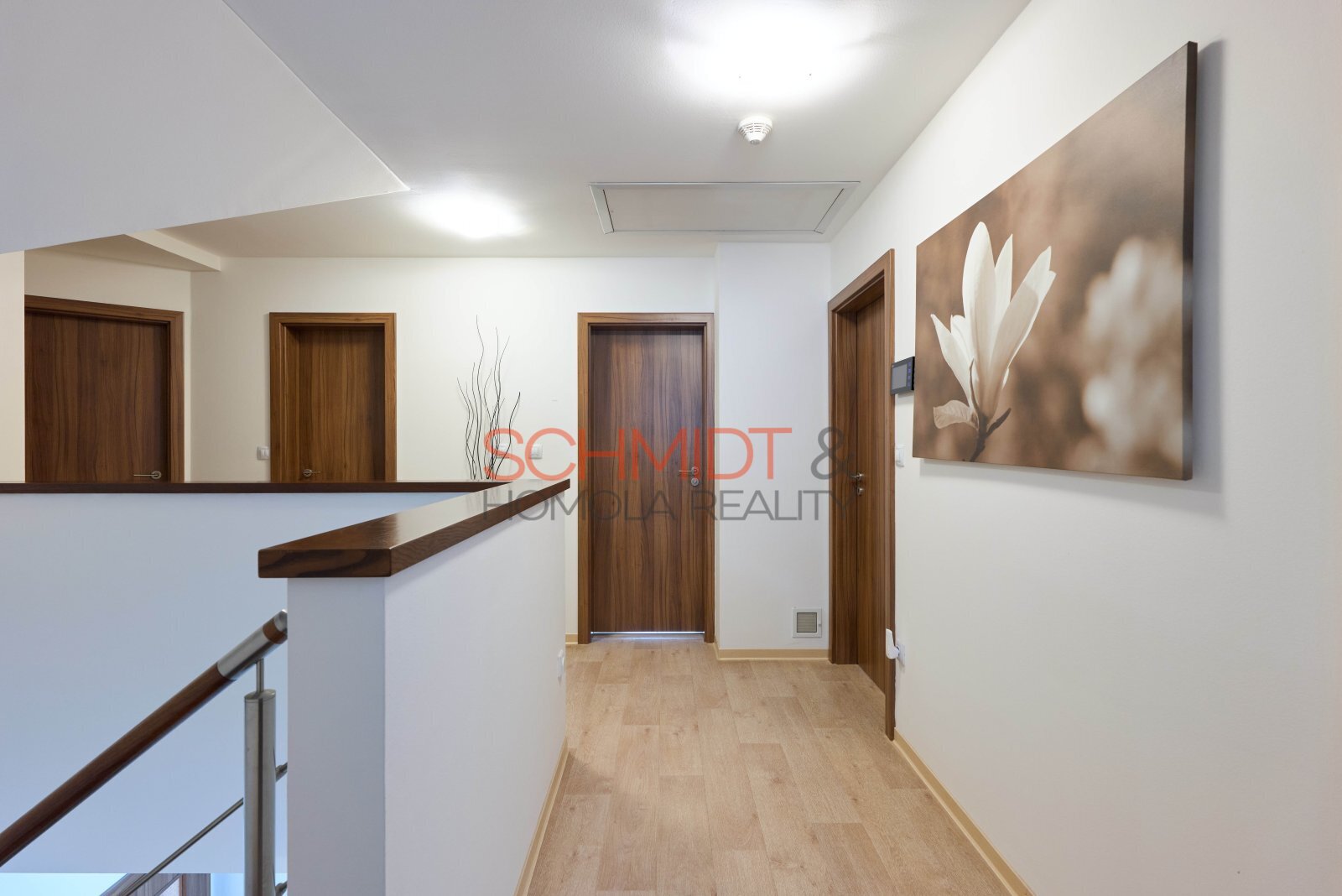 K chlazení slouží stropní klimatizace umístěná nad schodištěm v prvním podlaží. Centrální vysavač pomůže s běžným úklidem a zabezpečovací systém Jablotron propojený s požárními hlásiči dodá pocit bezpečí.