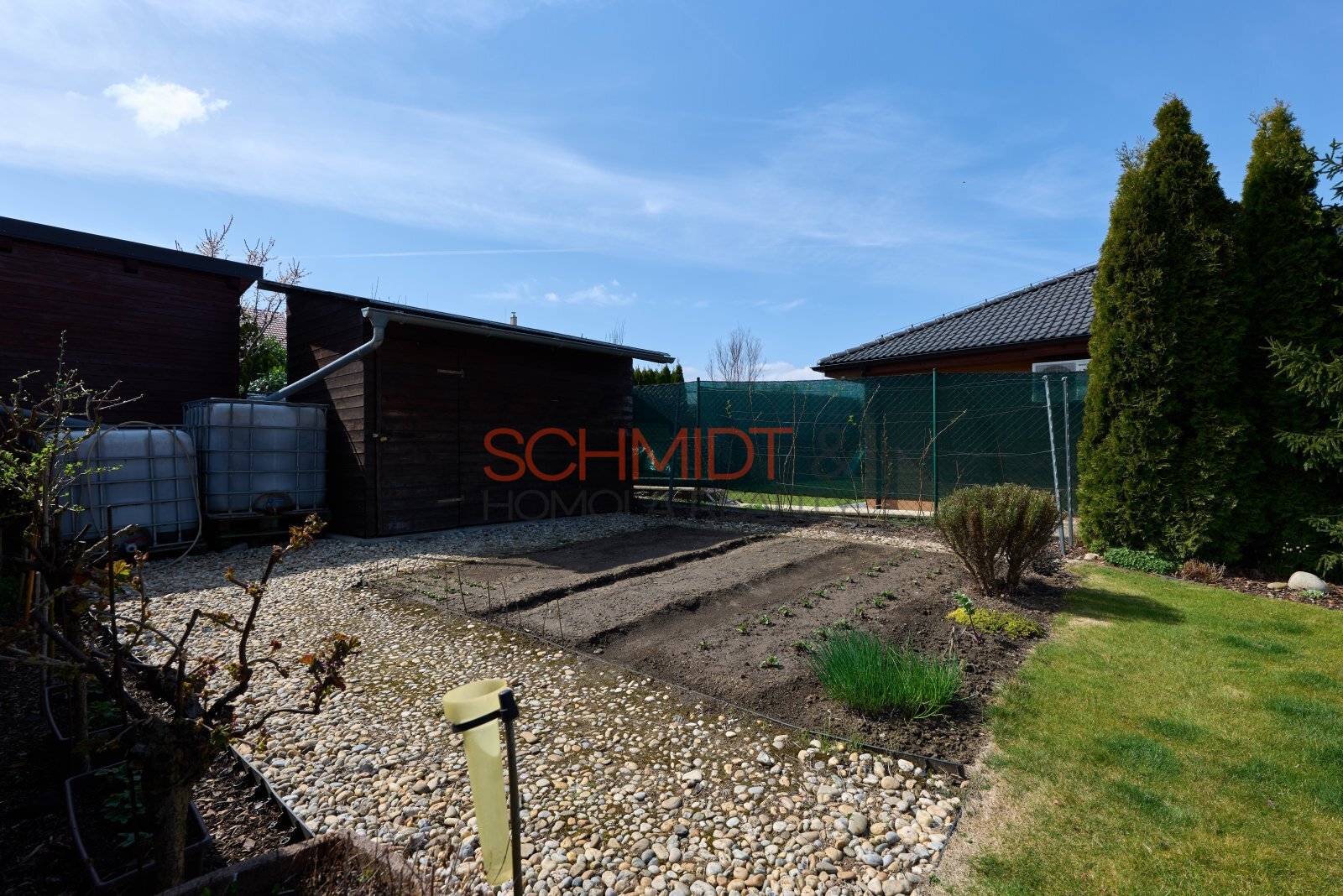 Dům se nachází na parcele o výměře 689 m². Krásná zahrada nabízí vzrostlé okrasné keře a zděný zahradní domek, který slouží k posezení s přáteli a odpočinku. Jeho součástí je další WC. Za zahradním domkem je kousek užitkové zahrádky.