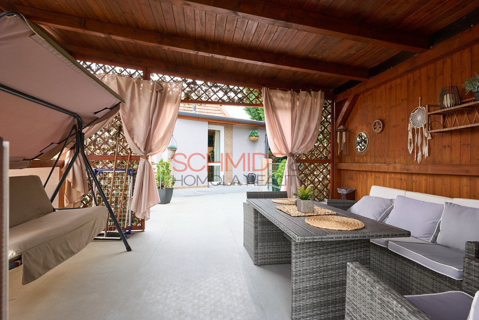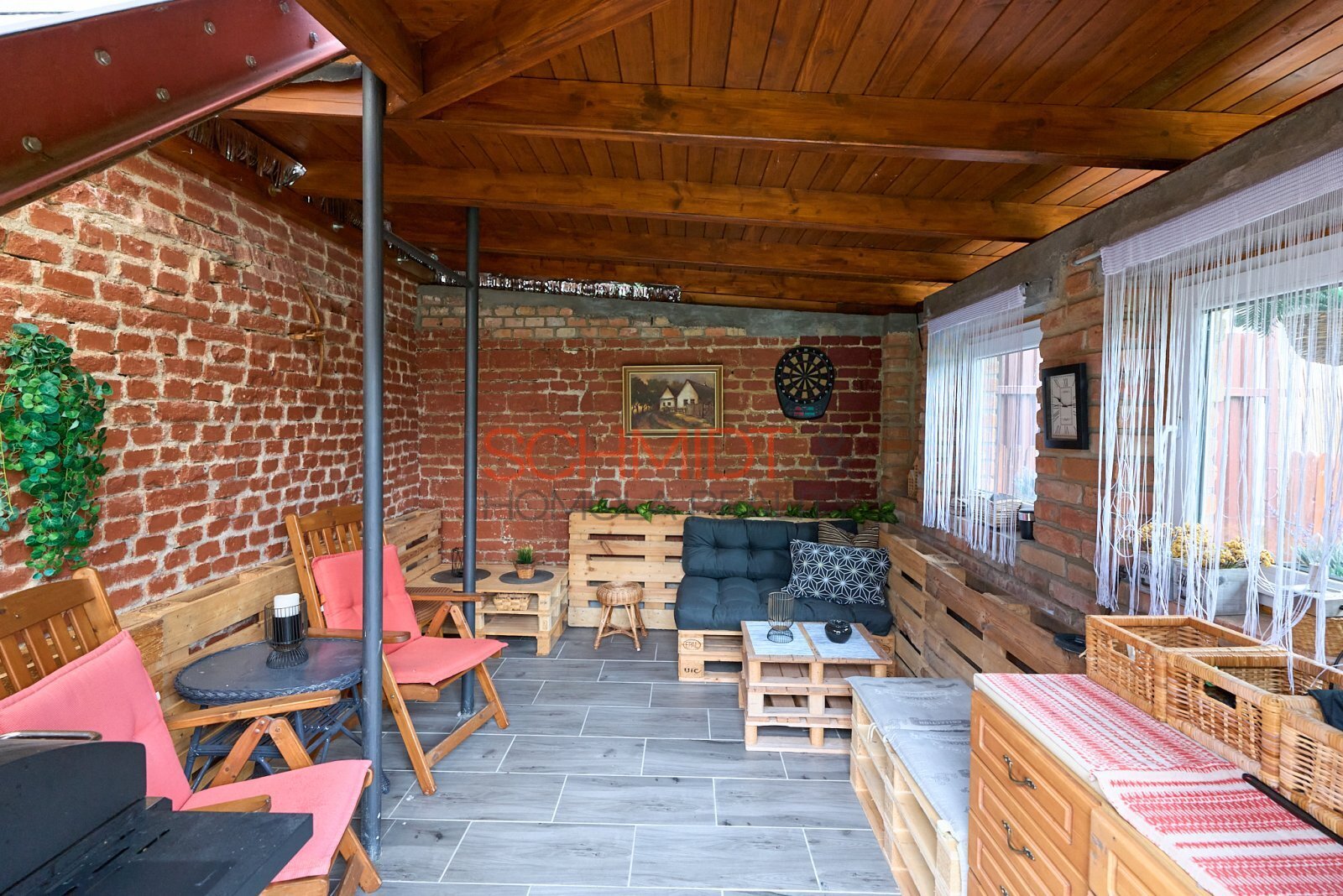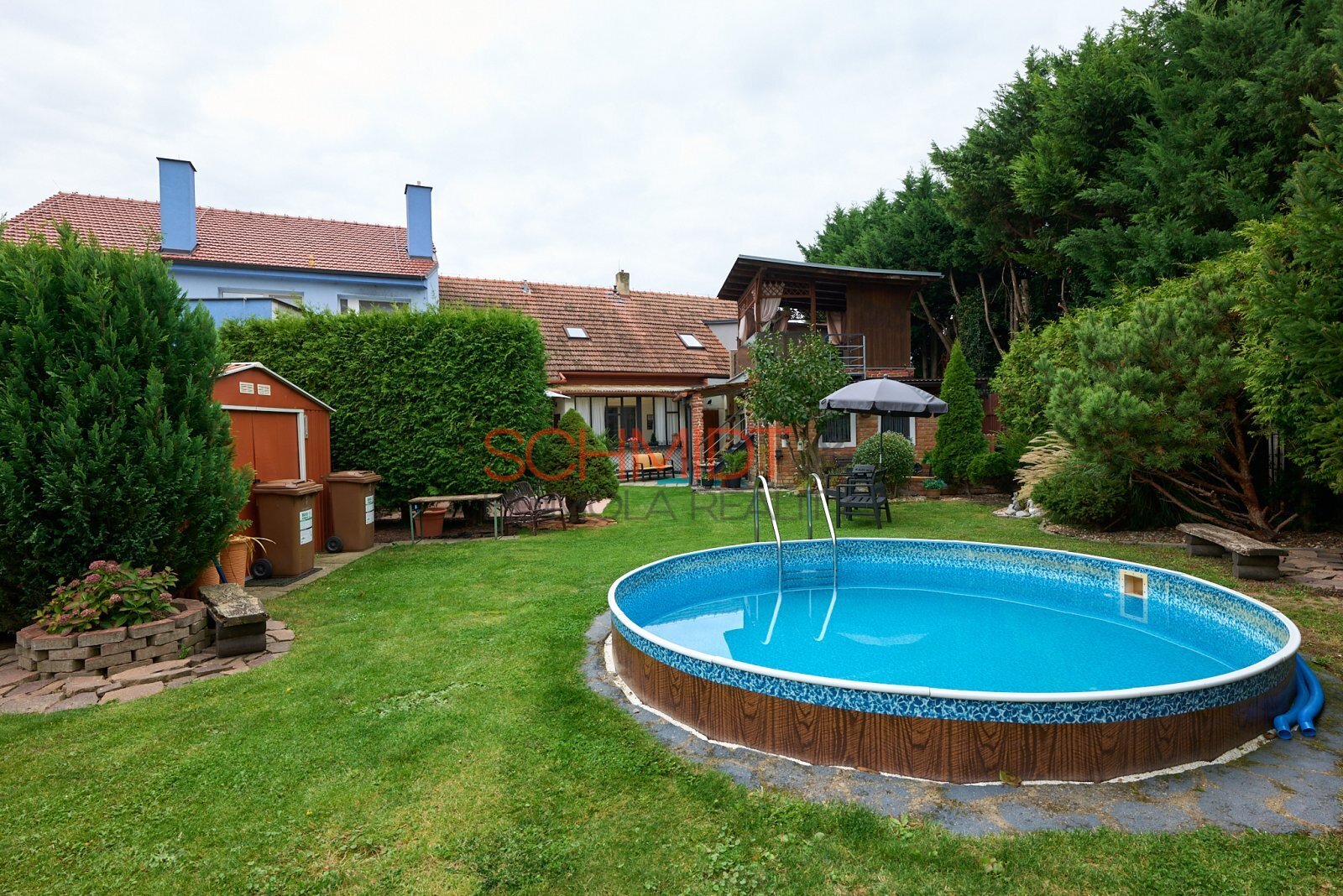 Bazén, kryté posezení, ovocné stromy, to je jen slabý výčet toho, co vše rovinatá a udržovaná zahrada nabízí. Pozemek má celkovou výměru 933 m², z toho zastavěná plocha domem činí 197 m².